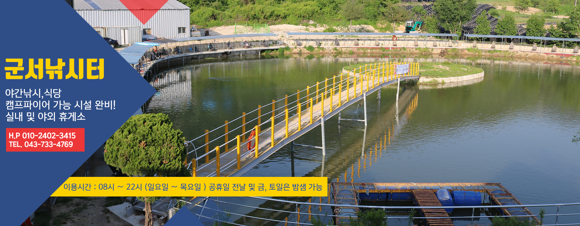 군서낚시터 | 대표자 : 우순이 | 주소 : 충청북도 옥천군 군서면 동평2길 12-30 (동평리 105) | 사업자등록번호 : 000-00-00000
